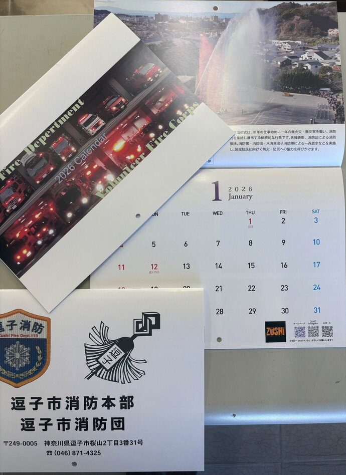 逗子市消防本部では、市民の皆さまに消防行政に対する理解と協力及び防災意識の高揚を図っていただくことを目的に、「逗子消防・消防団カレンダー2026」を作成いたしました。