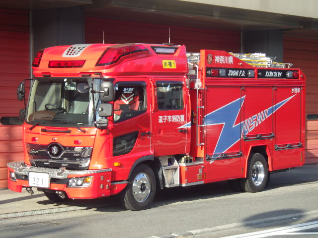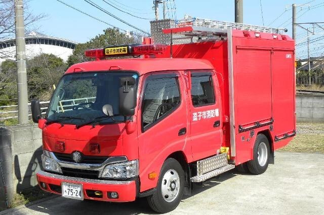 みんなが逗子市で一番見かける消防車はこの車!火を消したり、交通事故の現場に向かい困っている人を助けるよ!火を消す時に使うホースは、24本積んであって480m伸ばすことができるよ!