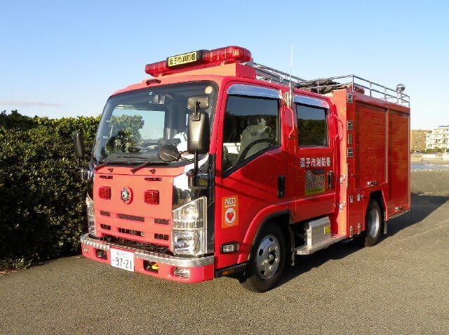 逗子市で泡が出せるしょうぼう車はキャフスだけ!!車の火事などでガソリンや油に引火したとき、泡でつつむことによって有効に消火することができるんだよ!