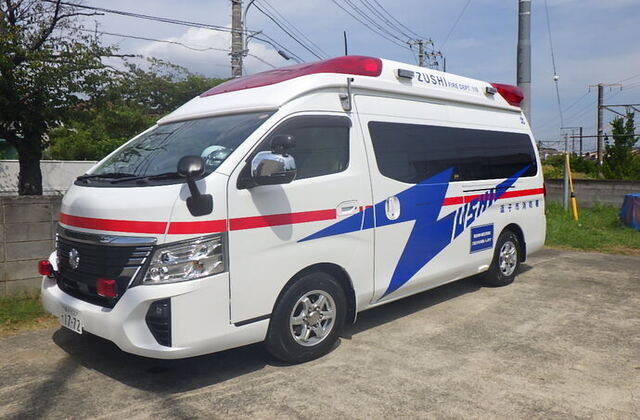 けがや病気で助けを求めている人のところへ向かい、そのとき必要な手当をしながらいち早く病院へ運ぶための車。Zushi(ずし)のZを車の横にデザインしている救急車は一台だけ!青い稲妻をイメージしているよ!探してみてね!